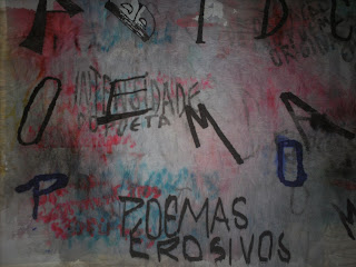 ñ possui nexo com as outras. As vezes as letras ficam soltas suspensas ,voando aleatoriamente. As frases ñ se complementam (na maioria das vezes) ,mas formam um poema , o poema sedimentado.